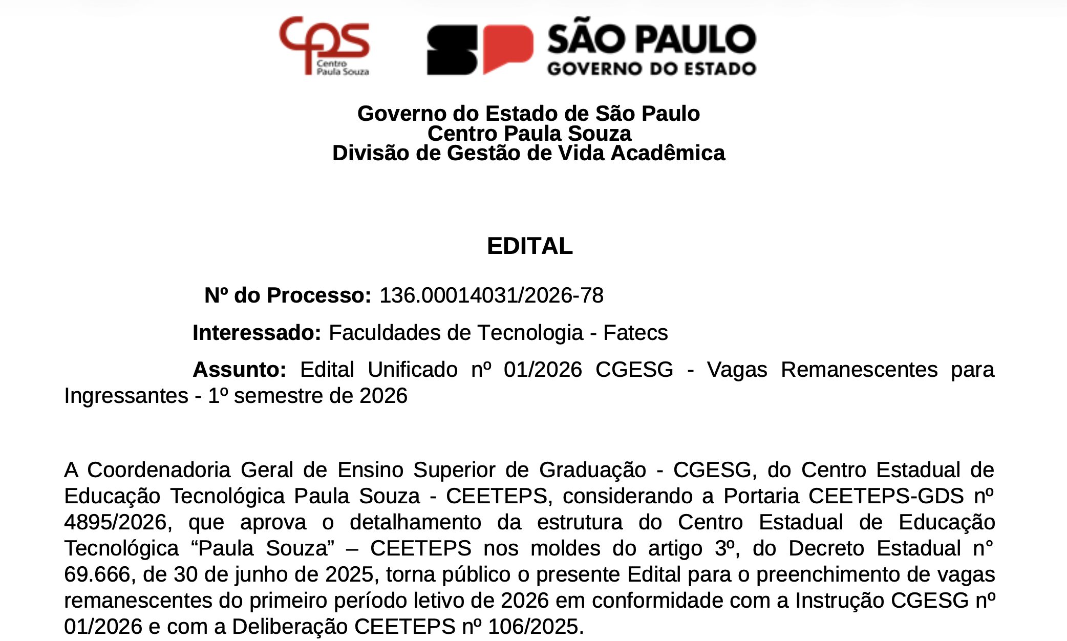 A inauguração aconteceu após Alckmin assinar os decretos de criação da FATEC Zona Sul e ETEC Zona Sul. Com isto, a FATEC-ZS passou a ser a 26ª Faculdade de Tecnologia. A Fatec Zona Sul, inspirada pelos excelentes resultados obtidos com a instalação da Fatec Zona Leste, ambas construídas em regiões carentes de ensino público e de qualidade, oferece os cursos de Análise e Desenvolvimento de Sistemas, Gestão Empresarial e Logística.