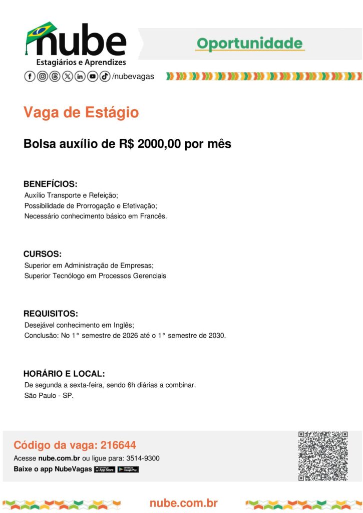 Nube – Oportunidade de Estágio – 216644